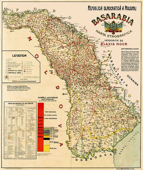 Moldova and Romania are neighbors that share a language and a lot of common history. The relationship between the countries doesn’t have any clear analogs elsewhere in Europe. In the middle ages modern day Moldova was part of the principalities that would later go on to form the Kingdom of Romania in 1881. But modern Moldova, historically called Bessarabia, was left out of this new nation because it had been annexed by the Russian Empire in 1812. When that empire disintegrated in 1917, Moldova declared independence and a year later voted to unite with Romania. The countries remained united until the Soviet Union re-annexed Bessarabia as part of their secret deal with Hitler in the Molotov–Ribbentrop Pact.