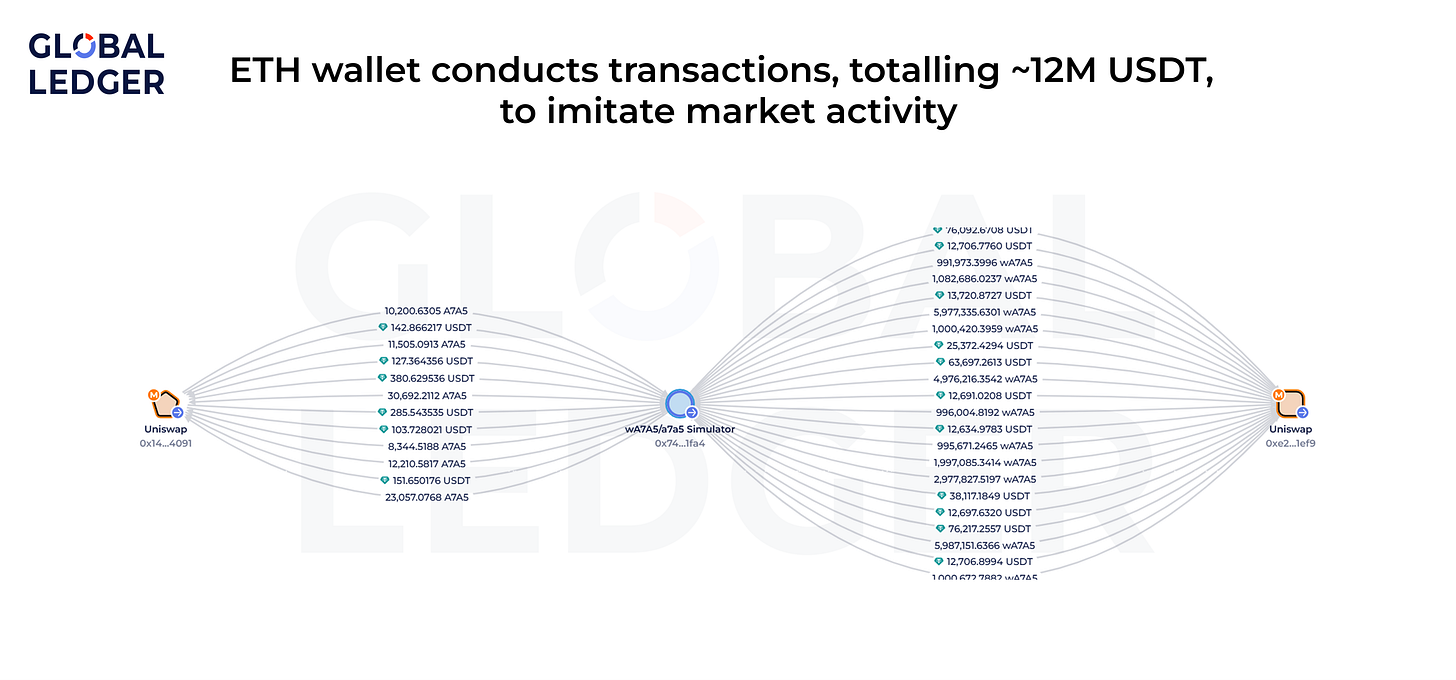 A company spokesperson went on to note that they tracked 3 Ethereum wallets facilitating trades with one another to create the illusion of a bigger market. One of these wallets alone was responsible for thousands of transactions approximating $12 million dollars in value in USDT to A7A5 trades