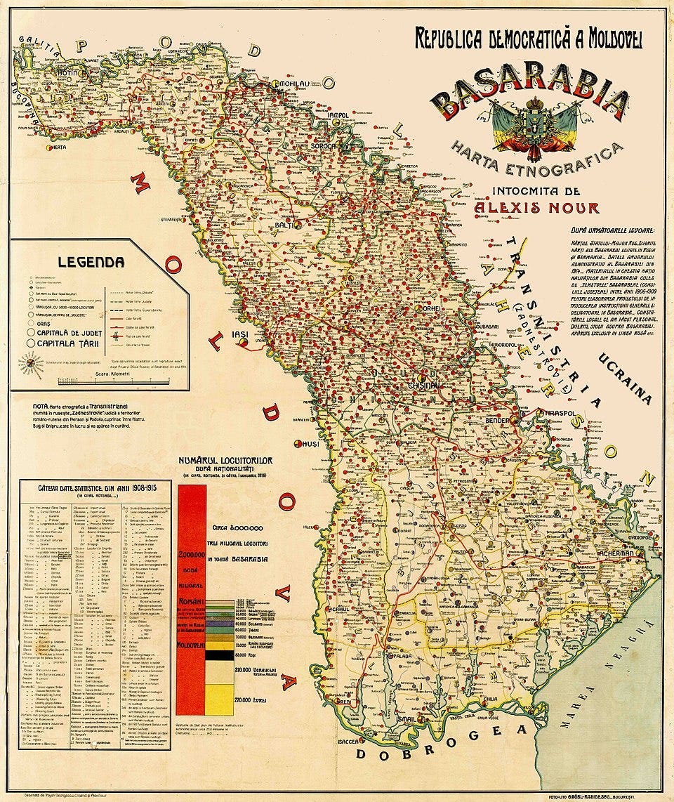 The Ukrainian political elites of all ideological stripes also vehemently contested the Union of Bessarabia with Romania as the province was perceived as part of ethnic Ukrainian lands2. This is in spite of all credible statistics (including Tsarist ones), showing that Ukrainians only made up around one quarter of the total population. Meanwhile, the Romanian-speaking populations3 made up around 50-60% of the province’s residents4.