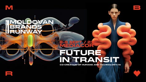 At first, they even thought about launching a design school, but continued with design gigs. Then, as the global AI boom of 2023–24 hit, they found themselves among its first local adopters. A big step was already taken in 2023, as they created the visuals for the Moldovan Brands Runway event with its “Future In Transit” theme.