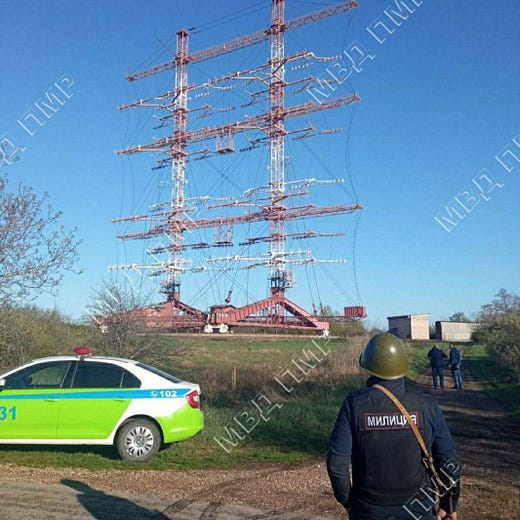 April 26th morning. A large AM radio transmitter was destroyed in Transnistria. No one was injured or killed.