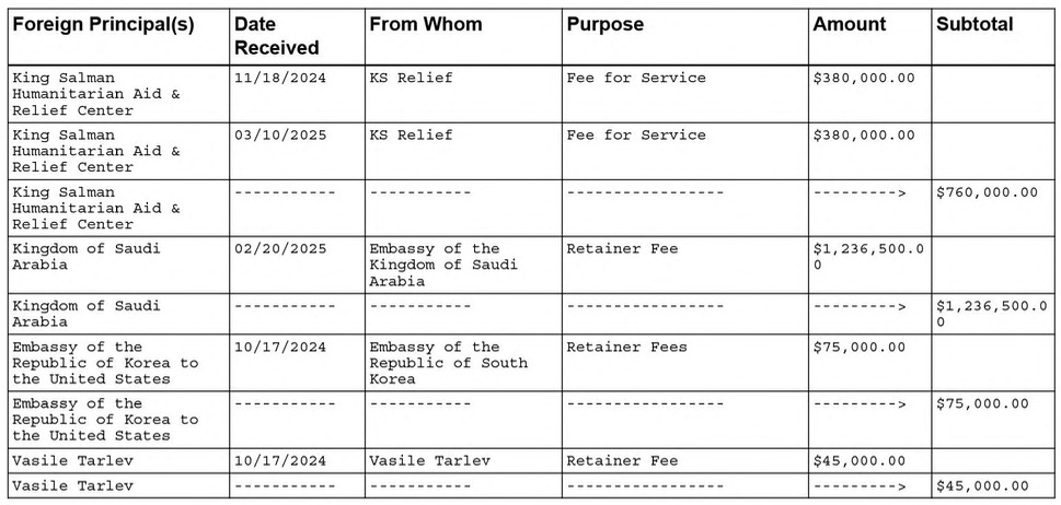 So why did I miss the filing in the May 7th article (which has since been updated)? There are a few possibilities. Firstly, while the Department of Justice marked the document as received on April 30th, we don’t specifically know when they uploaded it to their online database. Secondly, when looking for these filings I was focused on a search section dedicated to the relationship with Mr. Tarlev - this part of the database still marks the contract as “active” to this day and clearly hasn’t been updated since the original filing. The new supplemental filing covers all the work Qorvis did in this period, not only Mr. Tarlev, and its possible that it was online on May 7th and I missed it because the section related to him directly was not updated.