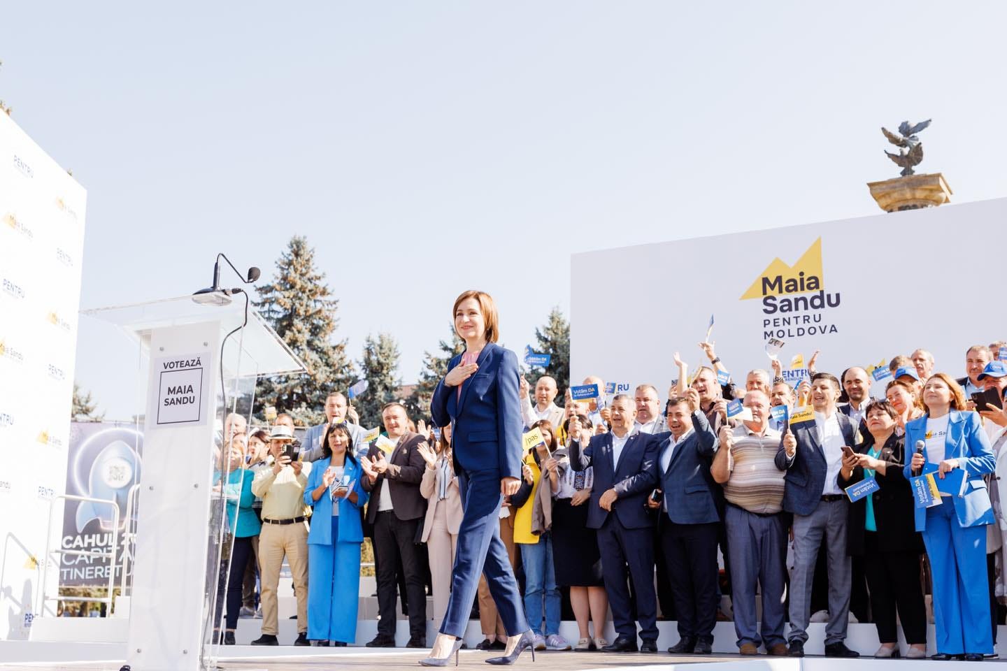 President Sandu launched her reelection campaign with a large rally outside the Opera and Ballet Theater in Chisinau. In her speech she stressed European integration as the national goal of Moldova saying: