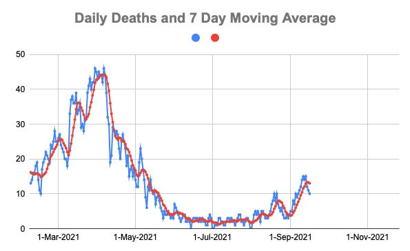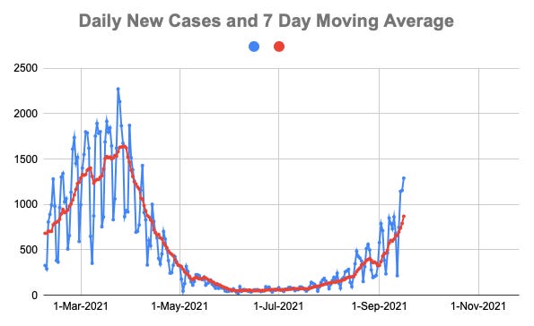 Moldova is now feeling the onset of the 3rd wave as the 7 day average rose to 869 cases per day and 13 deaths. Unfortunately, we should bring out charts out of retirement for context.